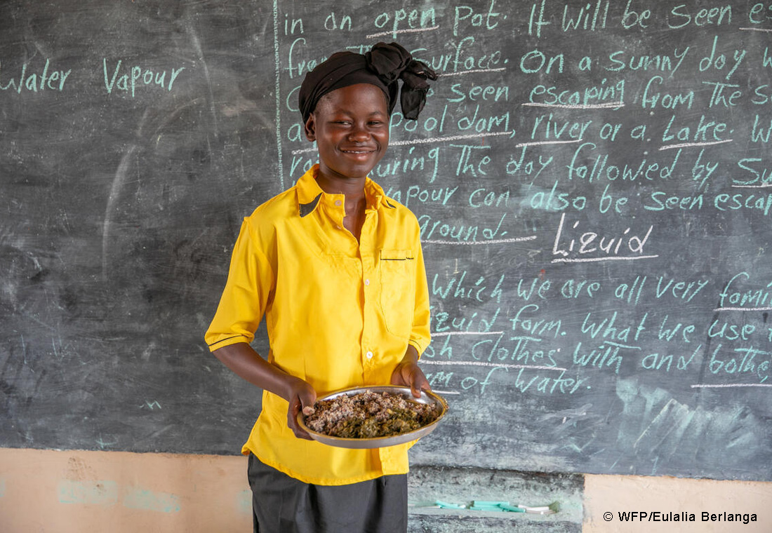 彼女にとって、国連WFPが提供する給食を食べることが、学校に行く楽しみのひとつです。