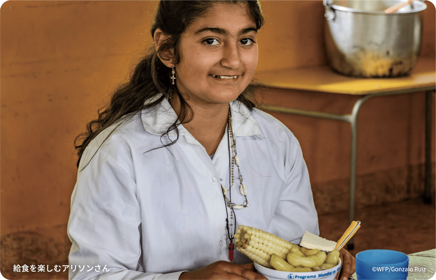 エクアドルの学校に通うアリソンさん(12歳)は、学校給食支援が始まる前までは、